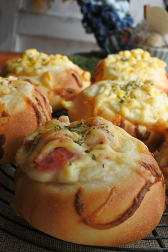 ホワイトソース作って、ベーコンとコーンをトッピング。チーズもたっぷりと♪